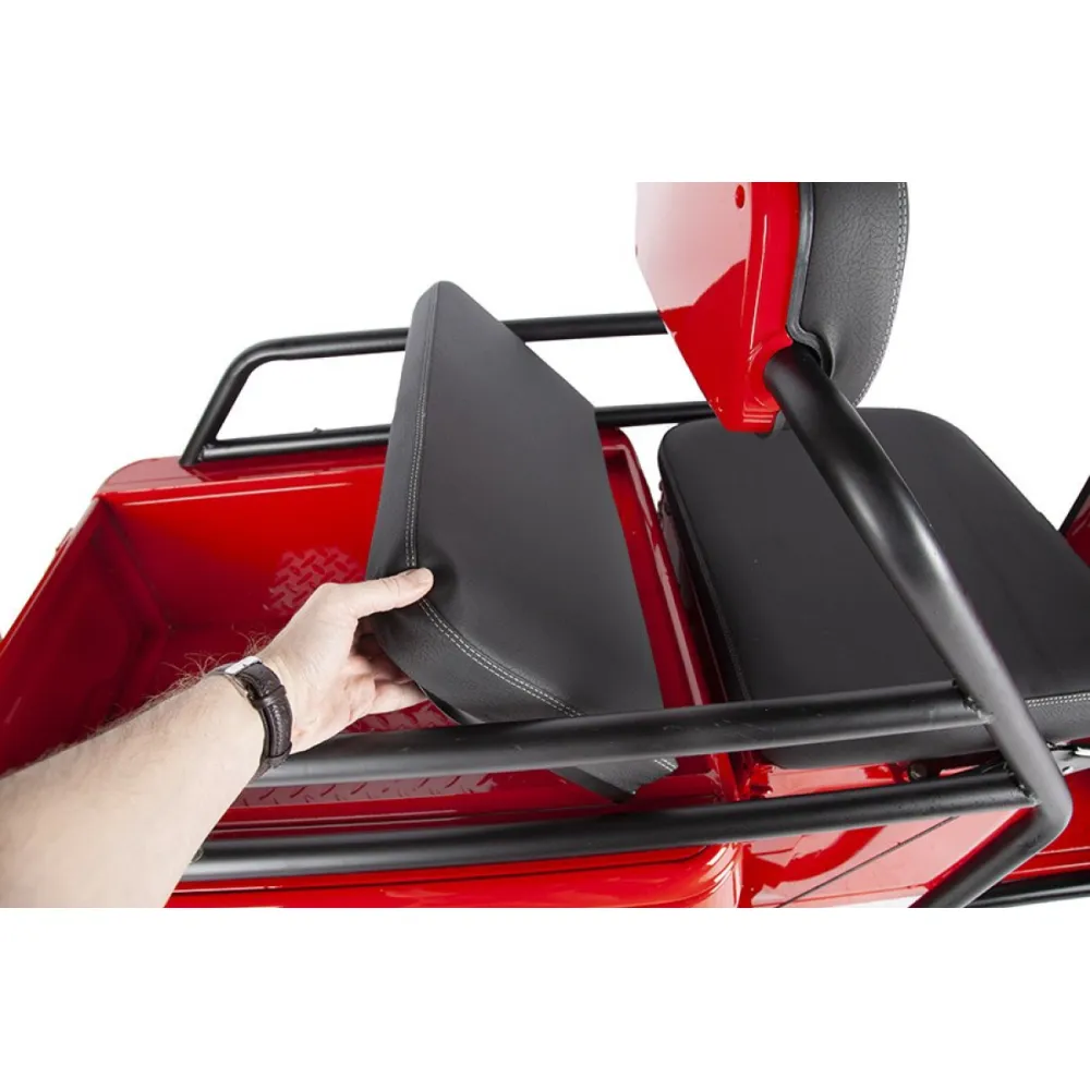 Модель оснащена мягким сиденьем, повторяющим анатомические части тела и снижающими нагрузку с позвоночника. Имеется дополнительное сиденье, благодаря которому одиночная прогулка превращается в удовольствие. Из дополнительных элементов и аксессуаров производитель выделяет вместительную переднюю металлическую корзину, зеркала заднего вида, мощную светодиодную фару, удобную нескользящую платформу для ног. При покупке техники производитель предоставляет гарантию 2 года на 100000 пробега.