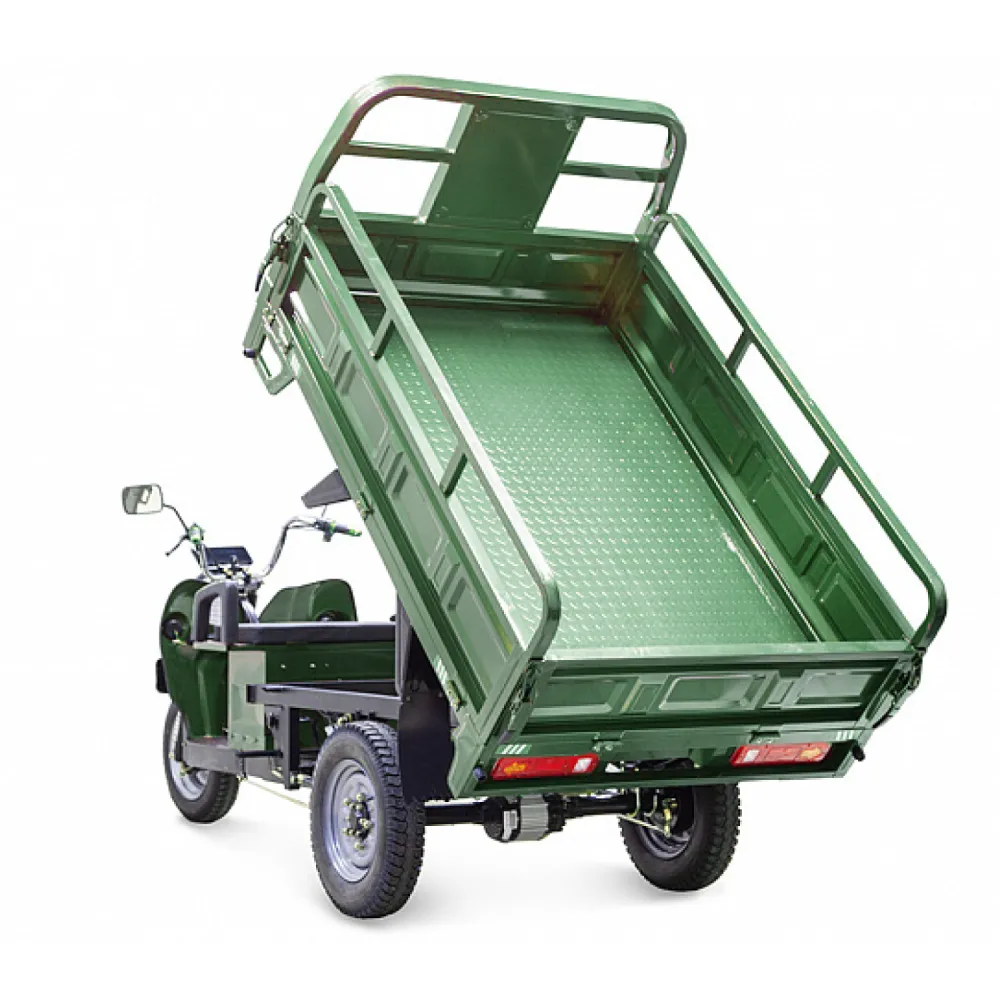 Мощность двигателя составляет 1500 Вт, в сочетании с гелевой тяговой батареей модель способна развивать скорость до 25 км/час и преодолевать 80 км пути. С такими характеристиками работать на приусадебном участке, в складском помещении или другой территории можно целый день. Модель оснащена вместительным кузовом, рассчитанным на грузоподъемность 1000 кг