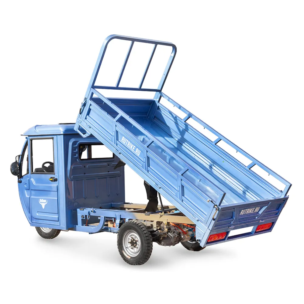 Грузовой электротрицикл Rutrike Фактор 2600 60V2000W - это надежное и мощное транспортное средство для перевозки грузов. Его высокая грузоподъемность, передний барабанный тормоз и задний гидравлический ножной тормоз делают его идеальным выбором для различных бизнес-потребностей.